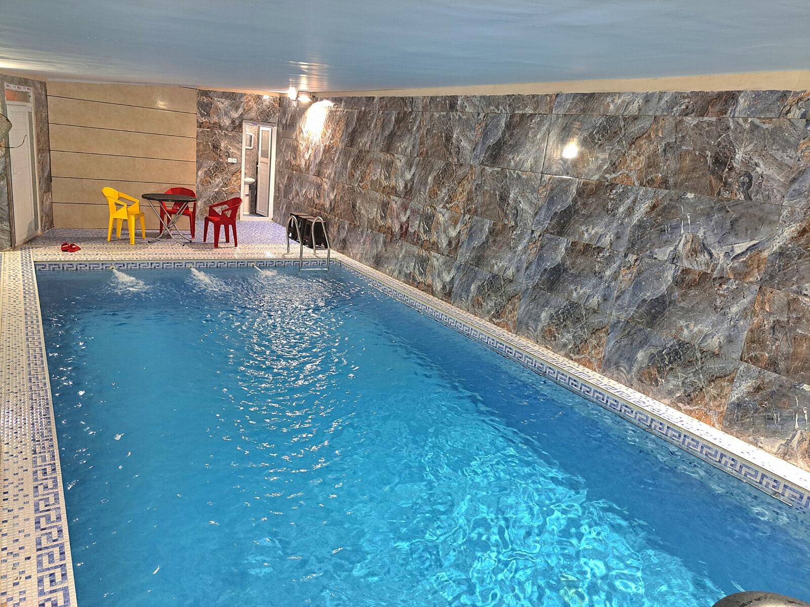 این ویلا دو خوابه که یک اتاق خواب آن مستر میباشد؛به همراه: استخر سرپوشیده آب گرم،میز فوتبال دستی،سیستم صوتی،تلوزیون هوشمند ال دی،آتشدان و میز وصندلی...قوانین اقامتگاه