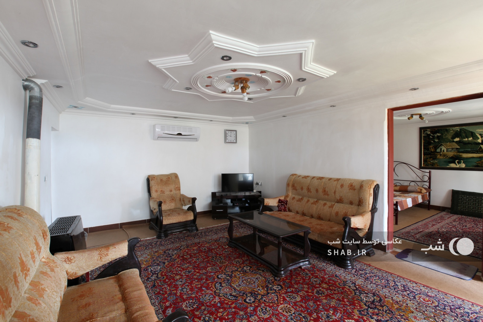 6 جای خواب1 تخت دونفره، 1 تخت یک نفره، 3 رخت خواب سنتی