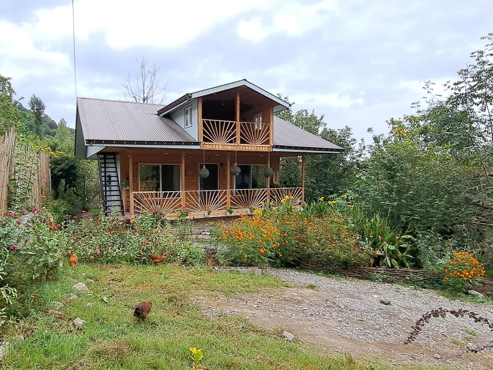 ویلای چوبی با چشم انداز جنگل و شالیزار