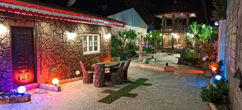 سوئیت نقلی با حیاطی فضاسازی شده و آلاچیق دو طبقه