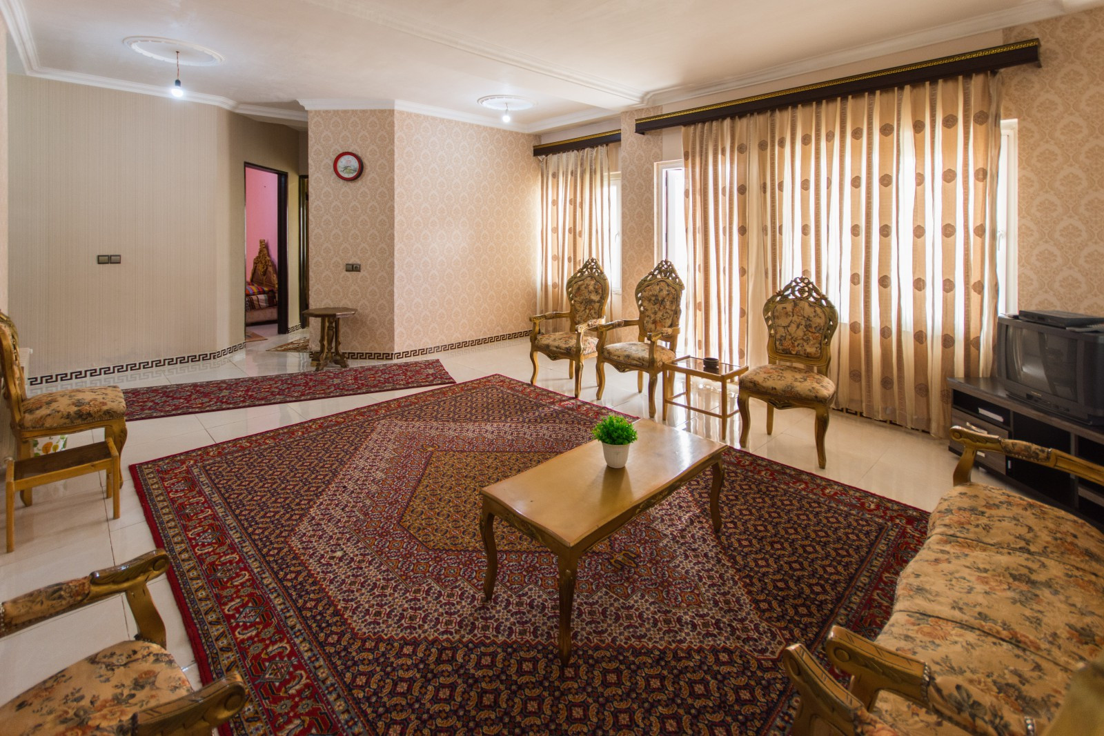 6 جای خواب2 تخت دونفره، 1 تخت یک نفره، 1 رخت خواب سنتی